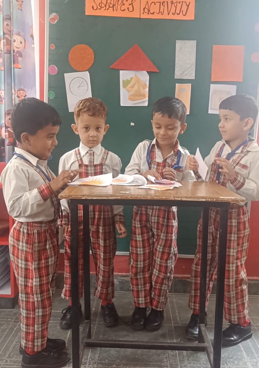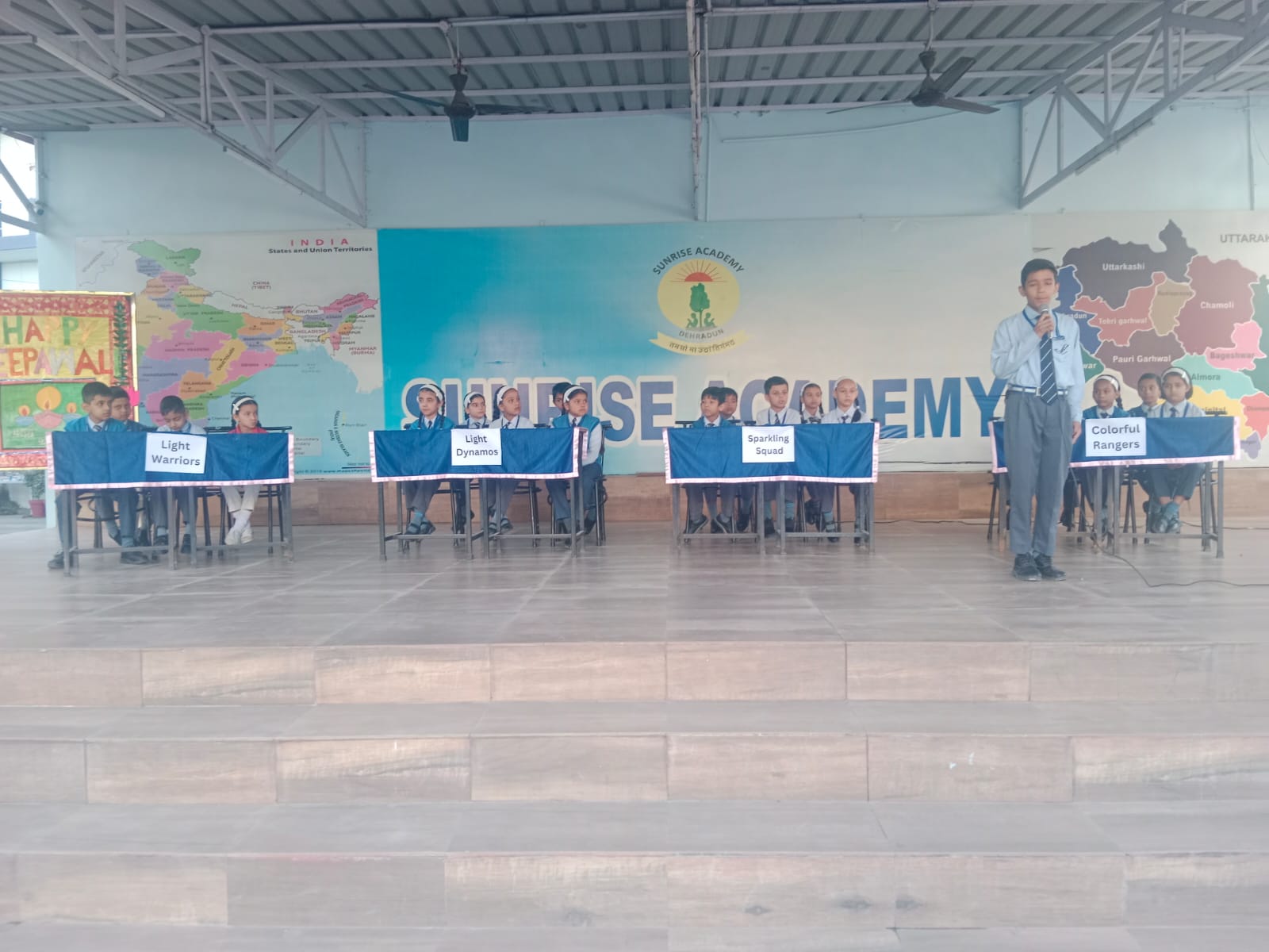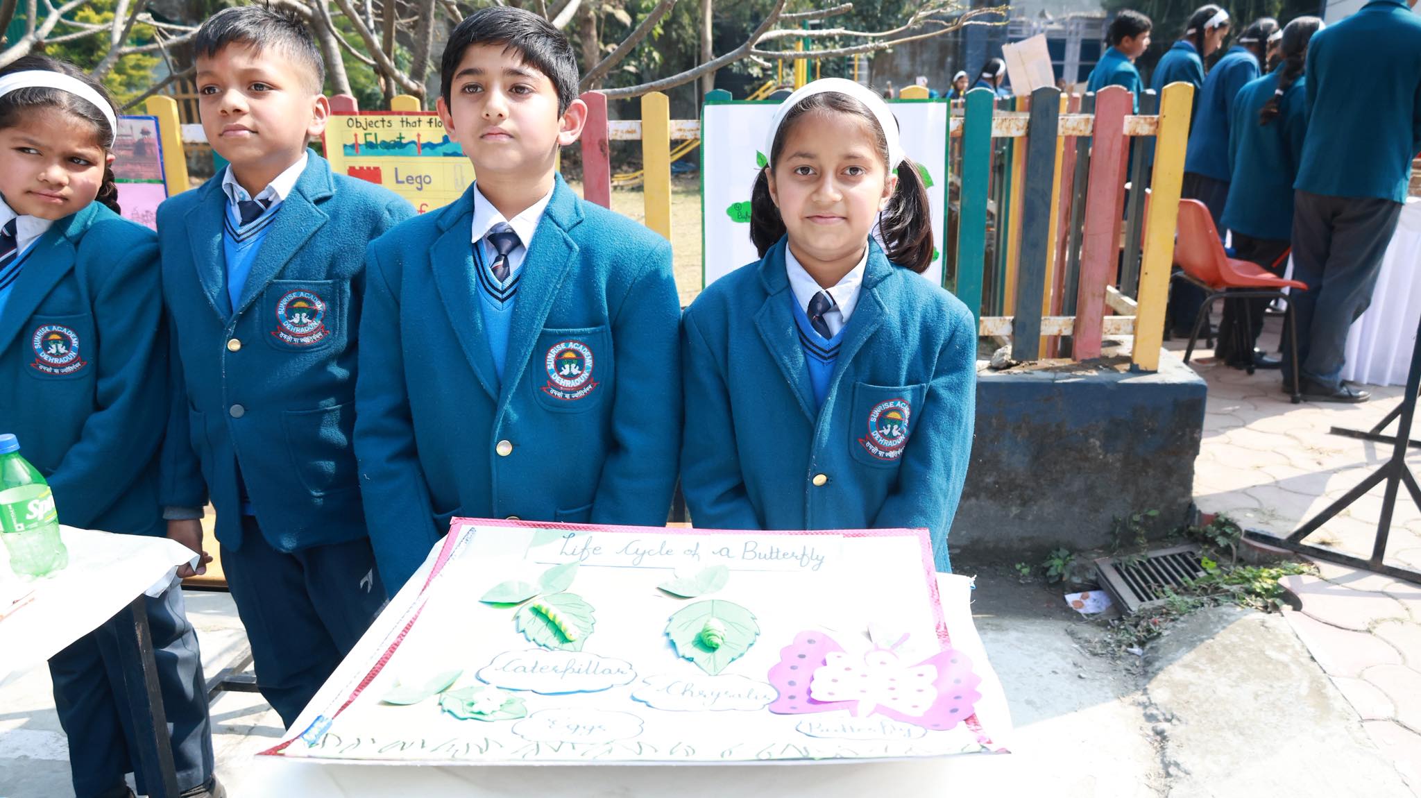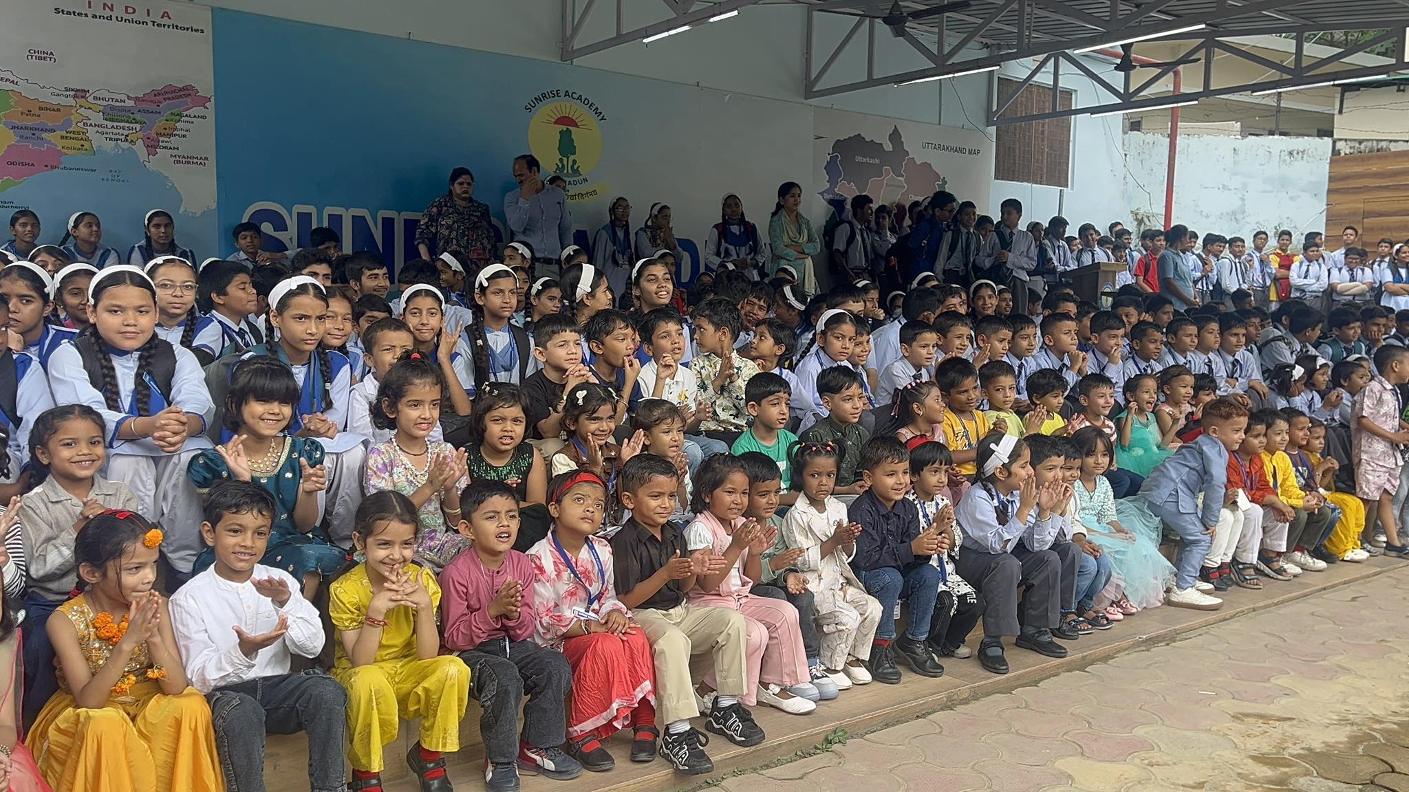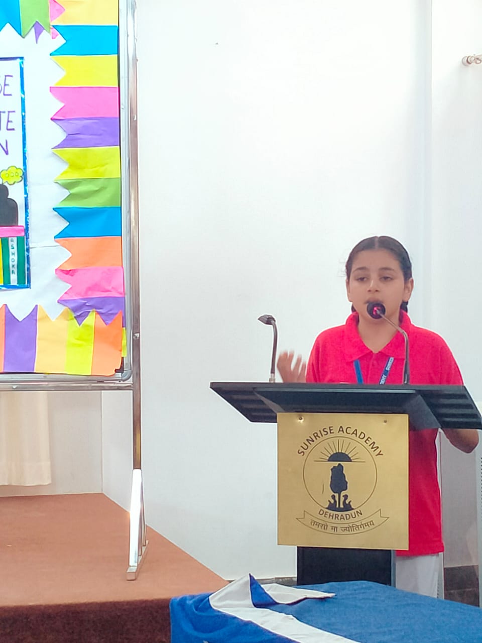 Special Assembly by class 1 students … telling importance of seven colours of Rainbow.