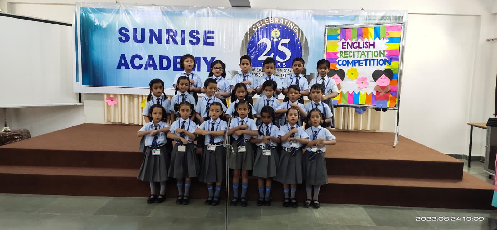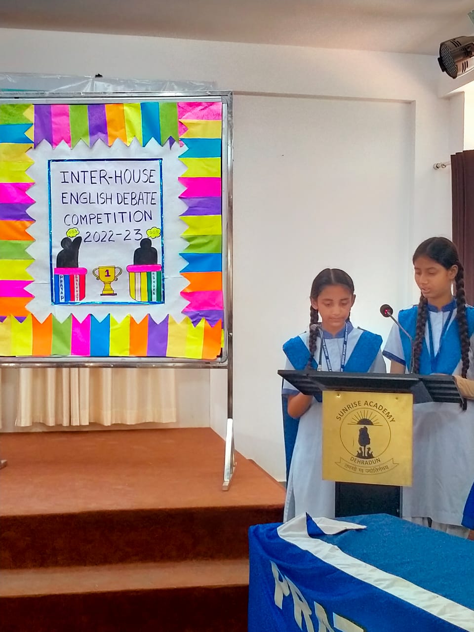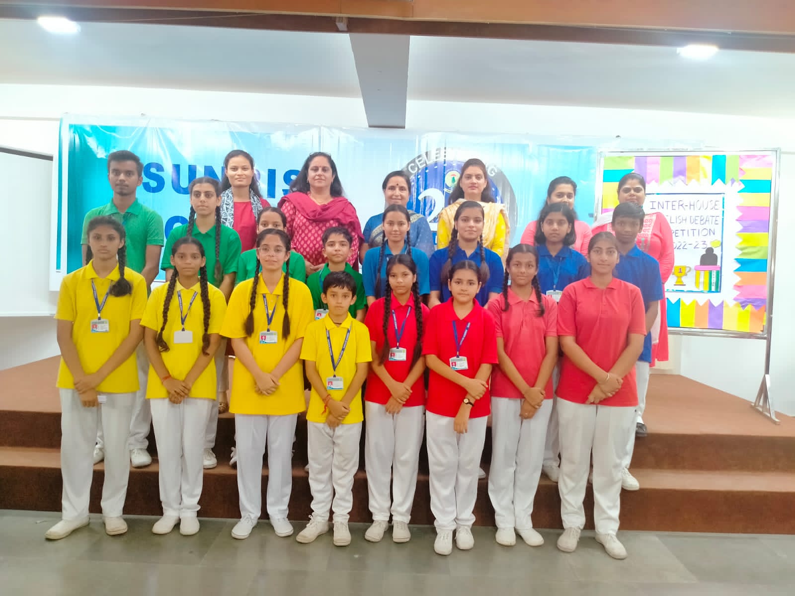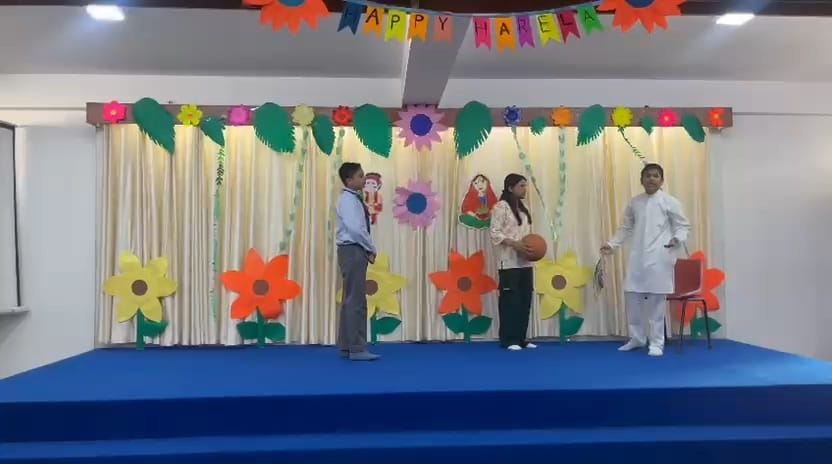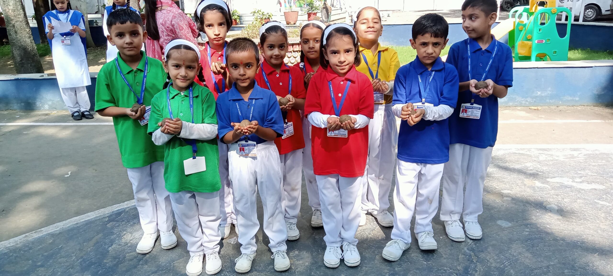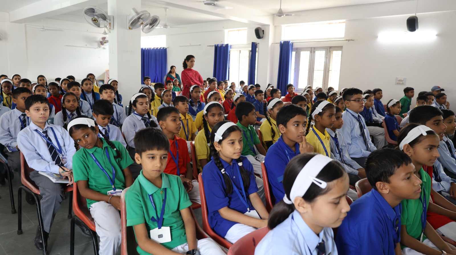 Special Assembly by class 1 students … telling importance of seven colours of Rainbow.