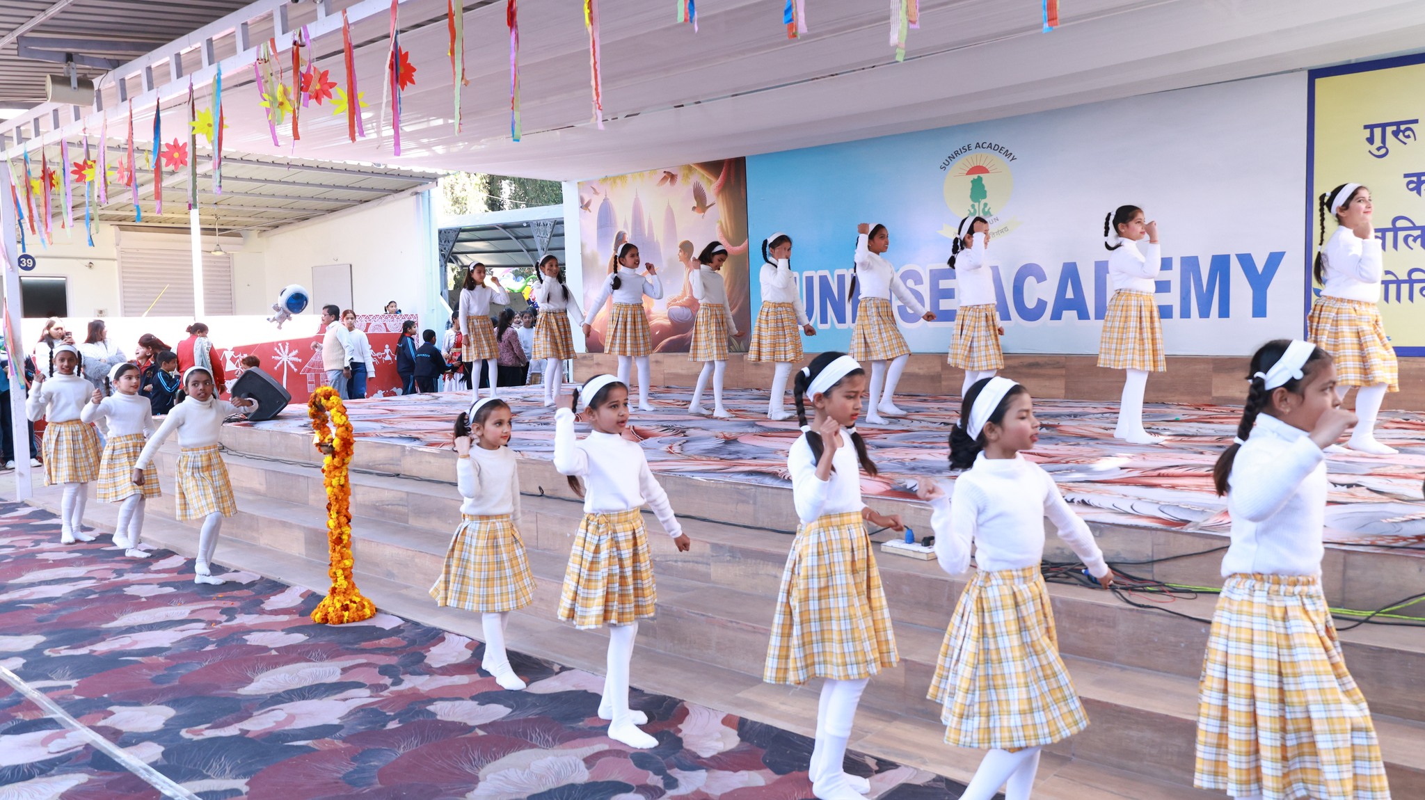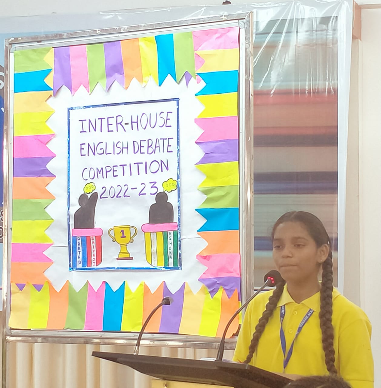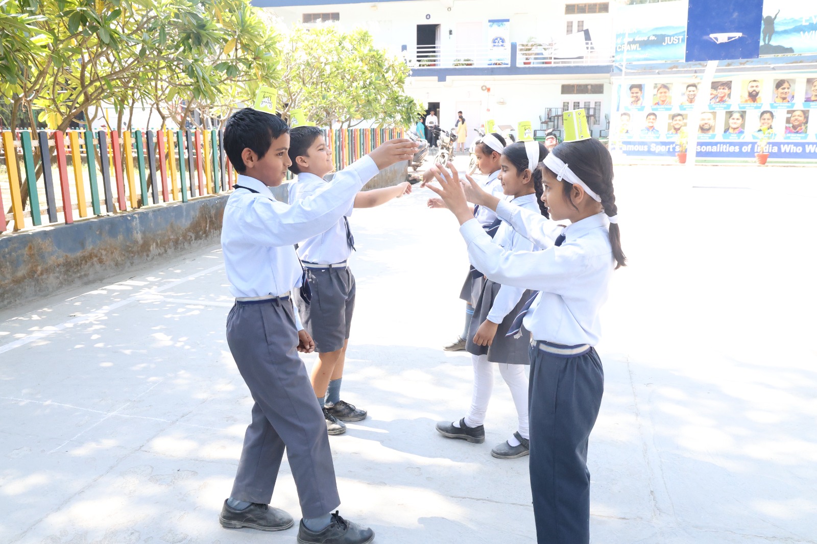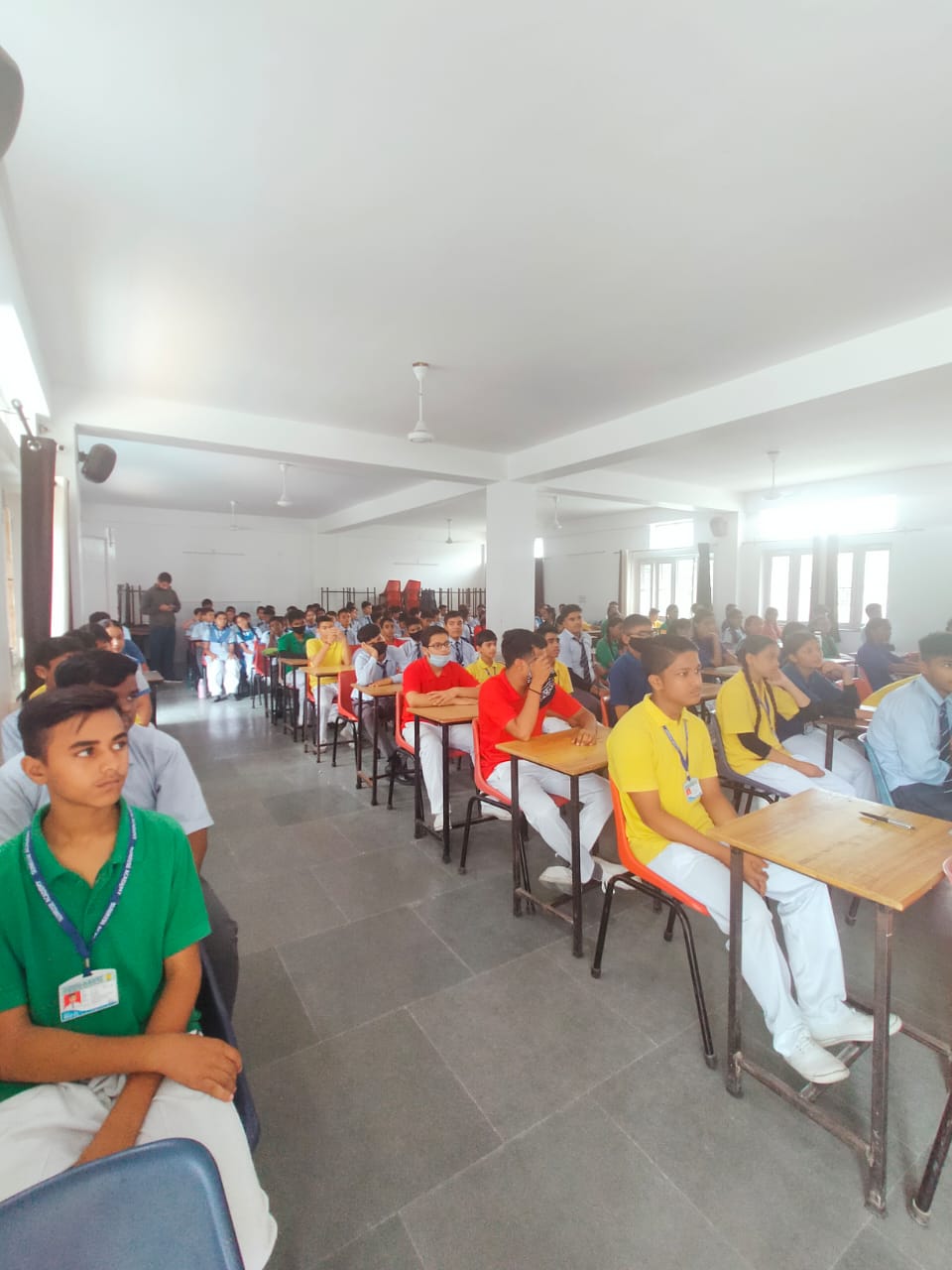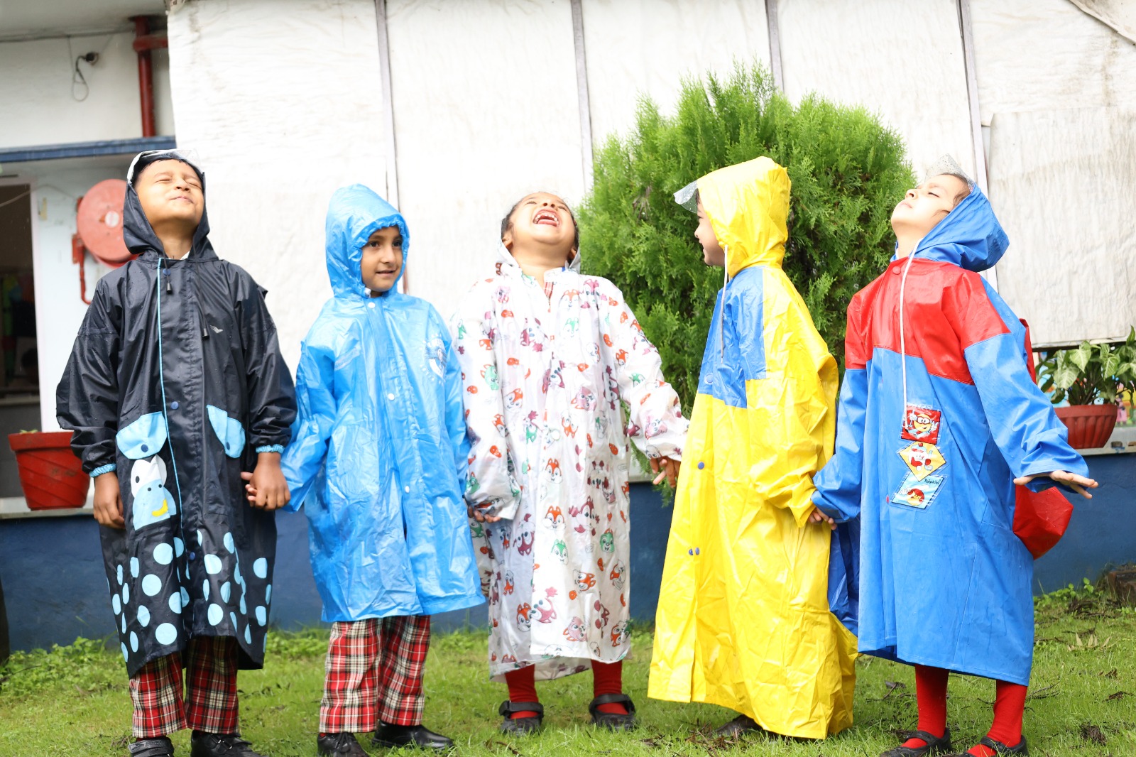 Special Assembly by class 1 students … telling importance of seven colours of Rainbow.