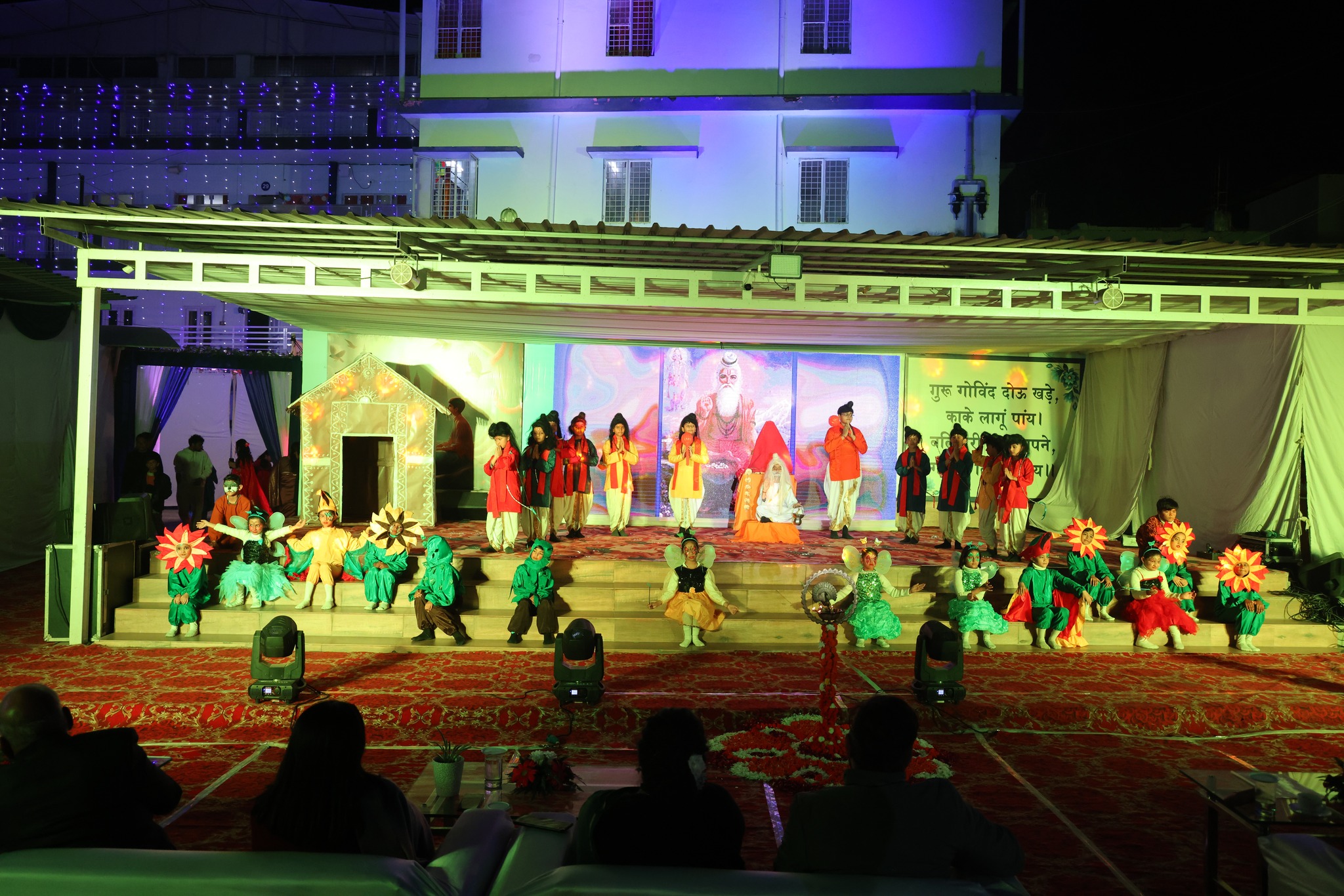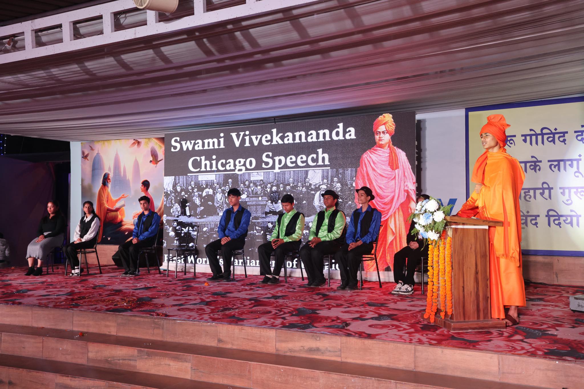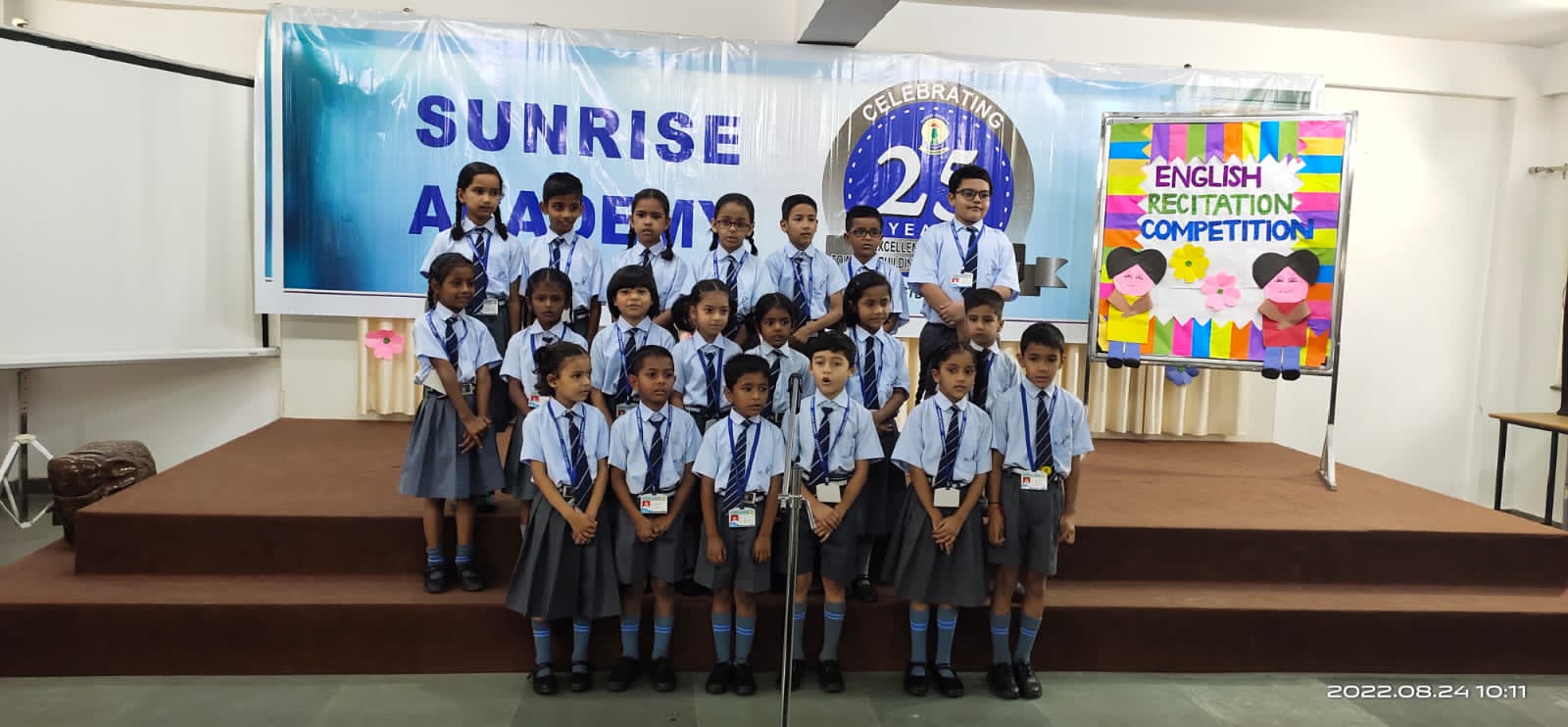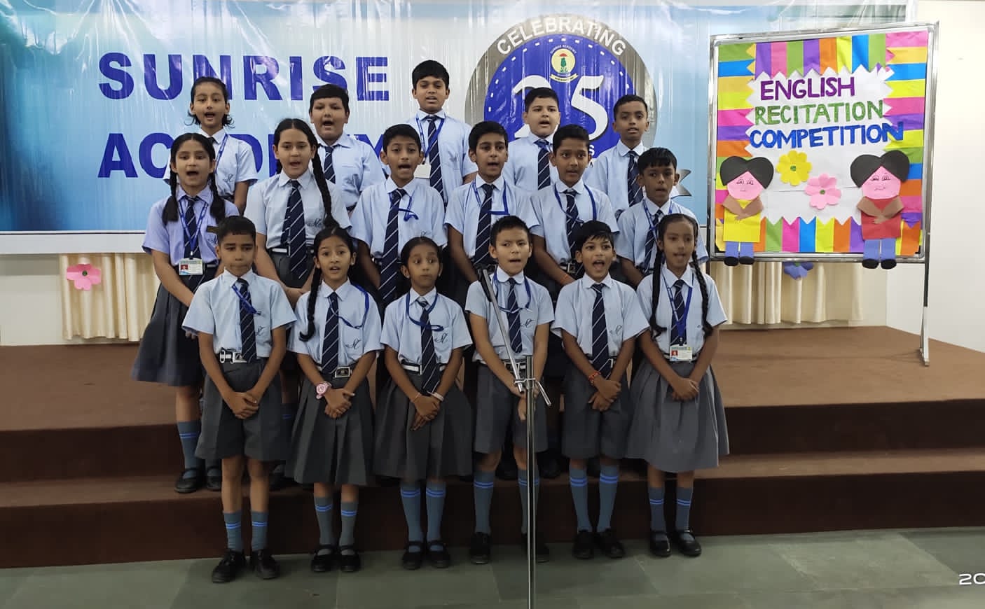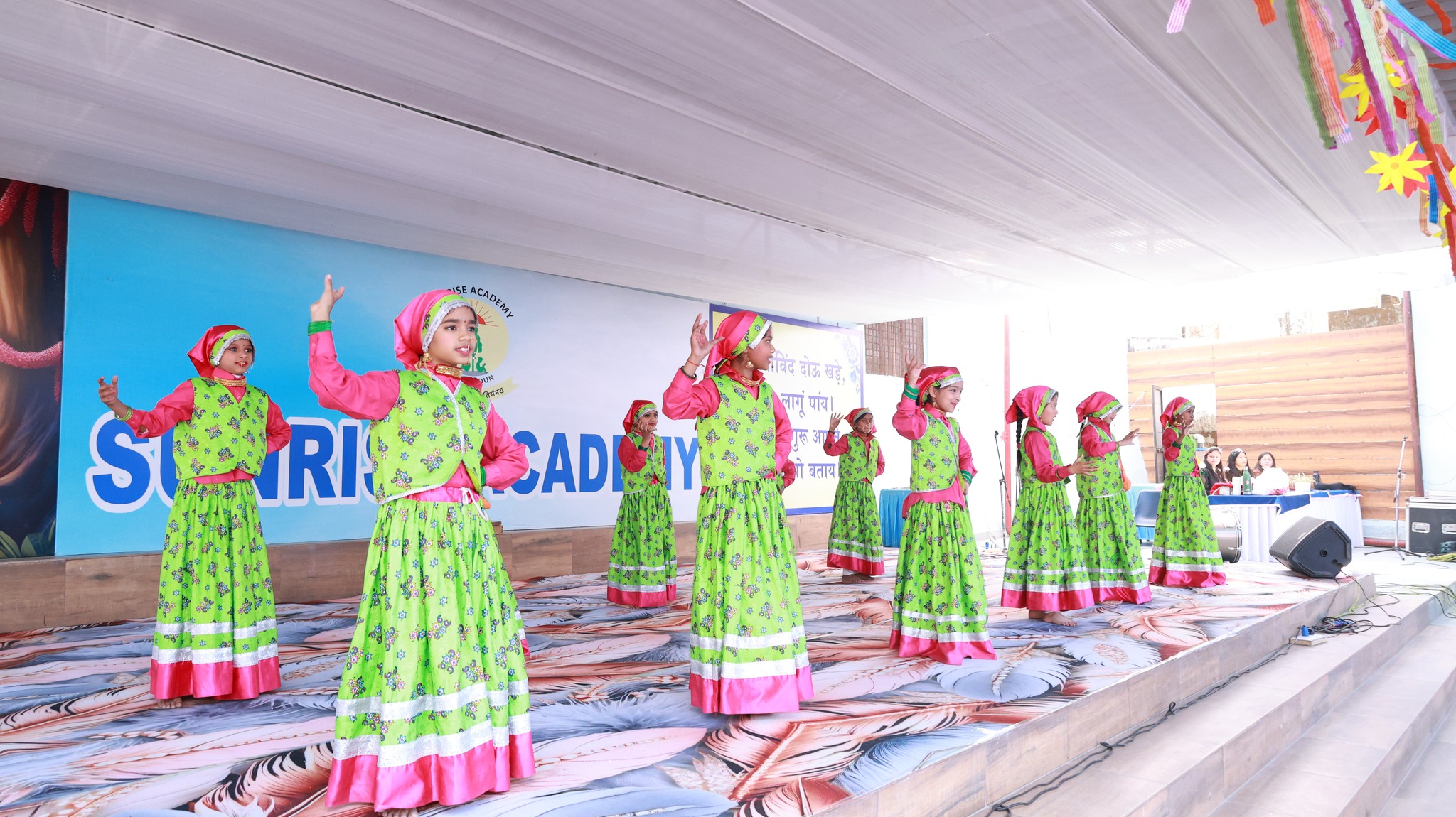 Special Assembly by class 1 students … telling importance of seven colours of Rainbow.