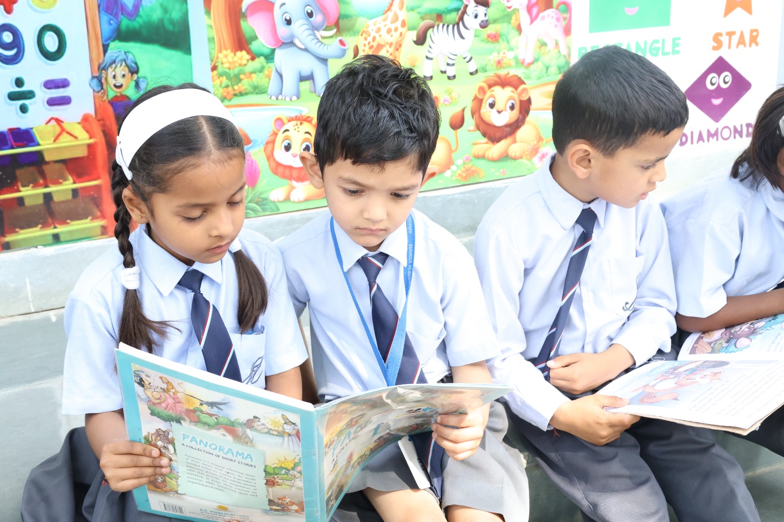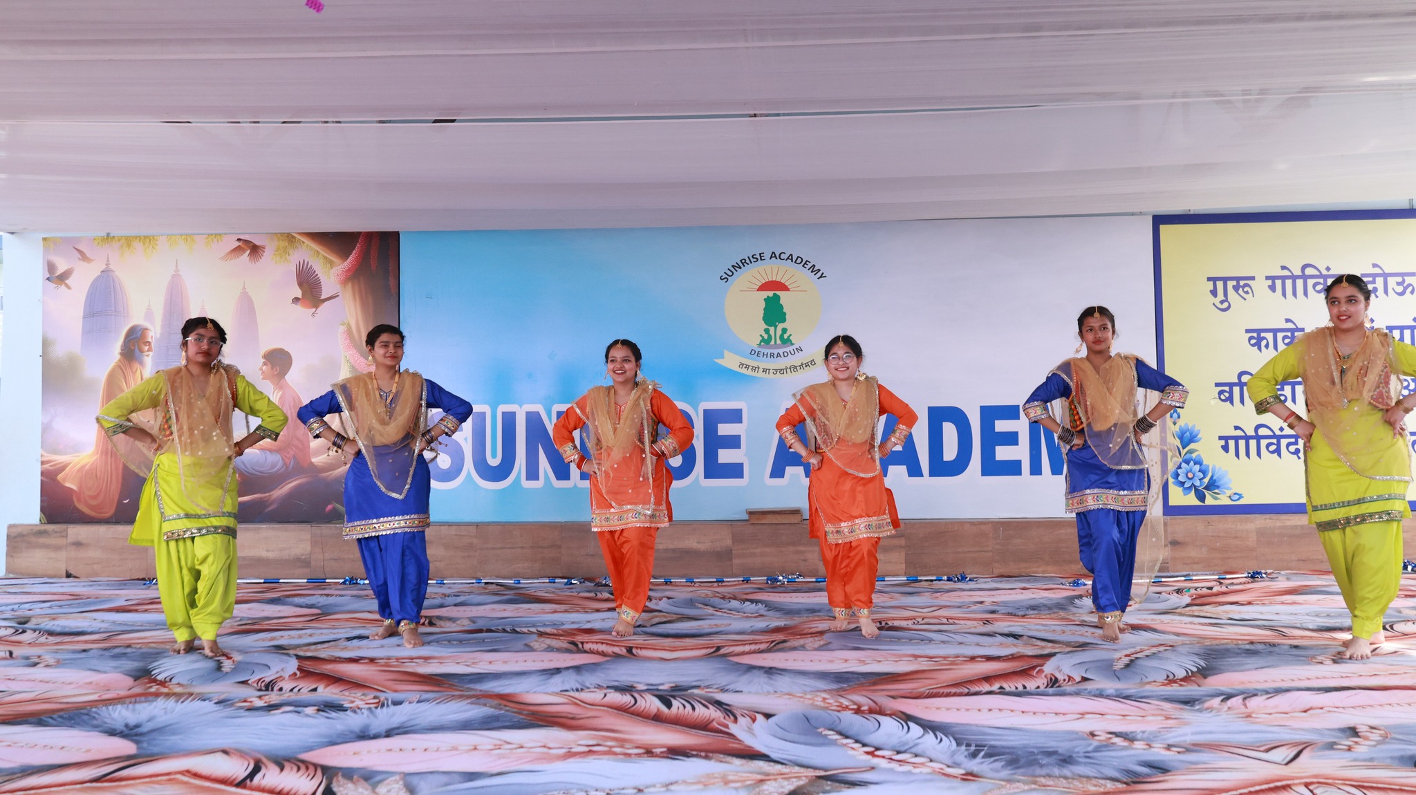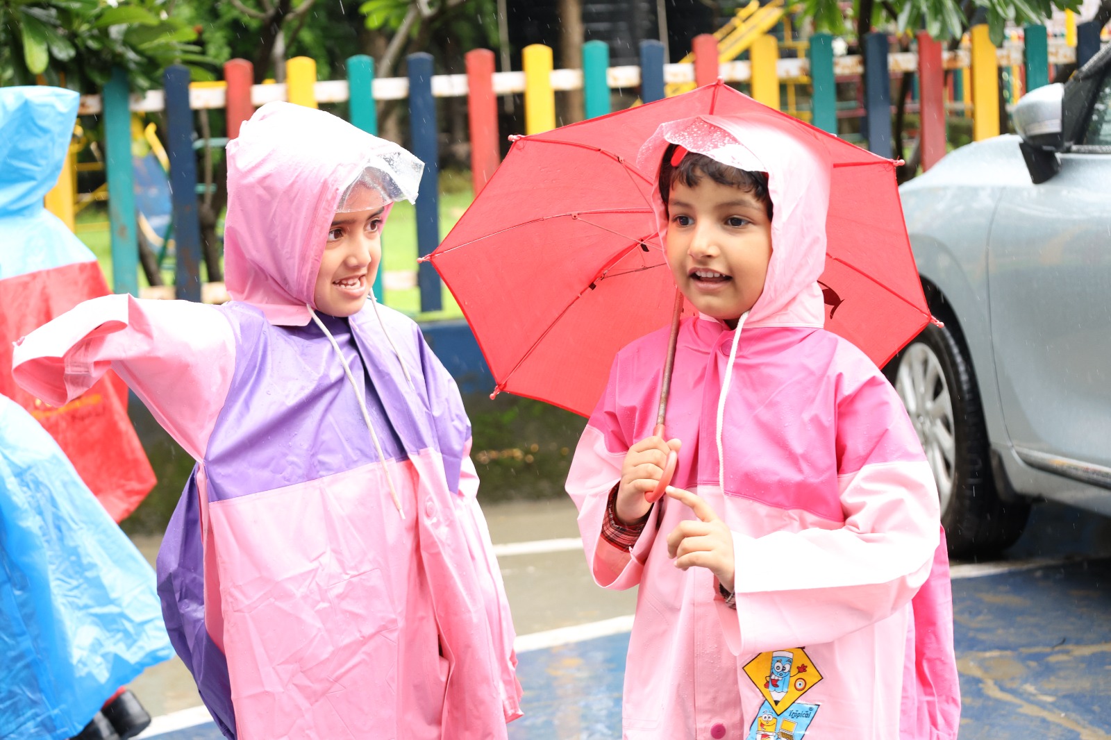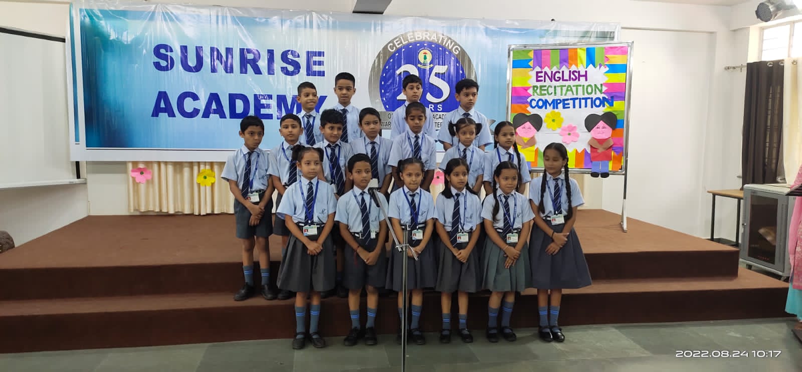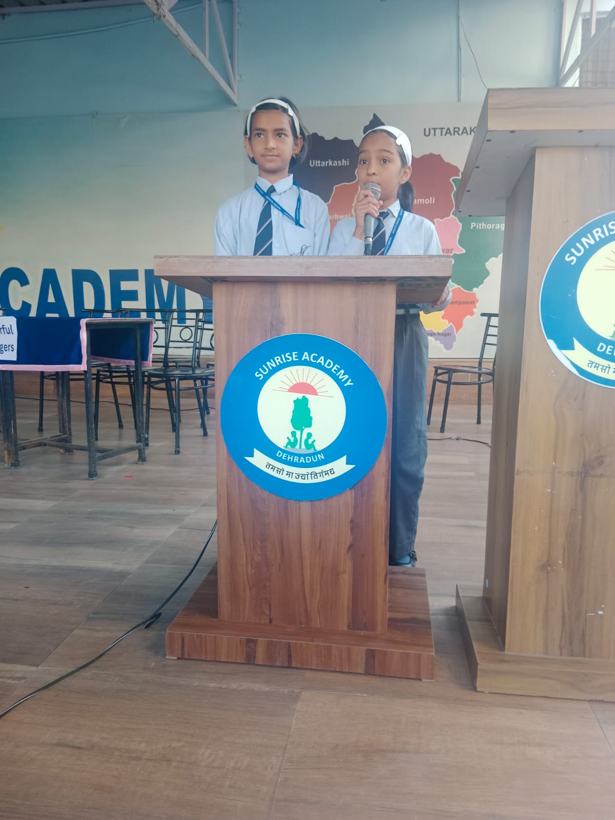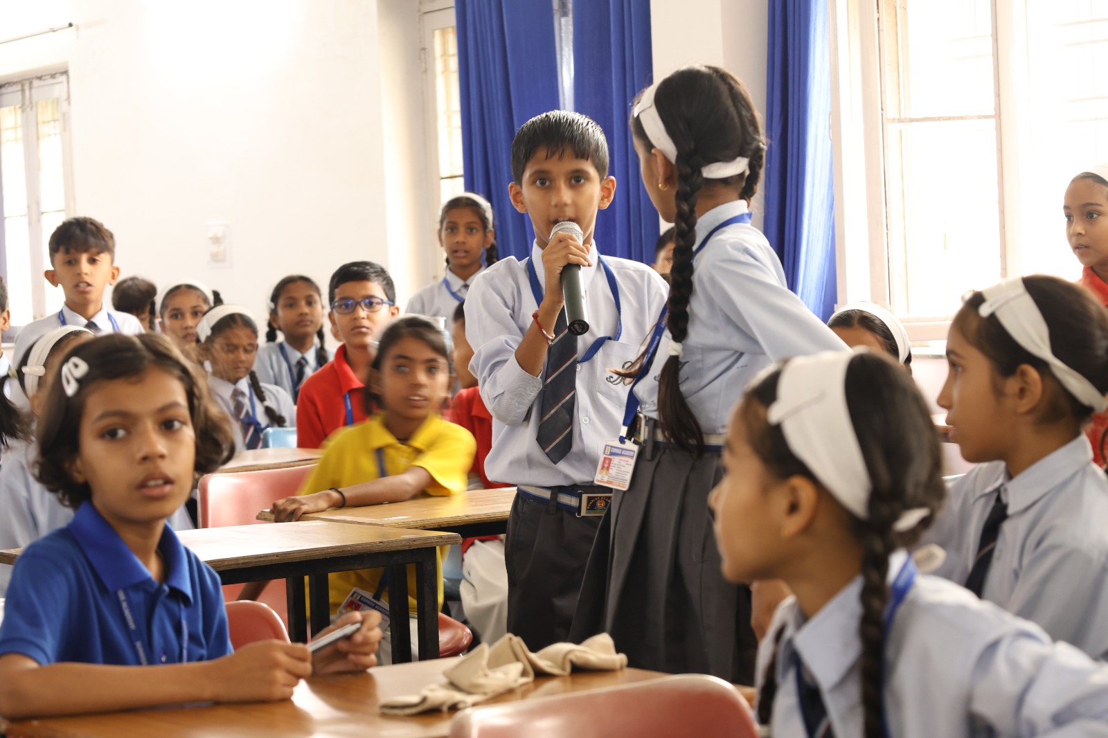 Special Assembly by class 1 students … telling importance of seven colours of Rainbow.