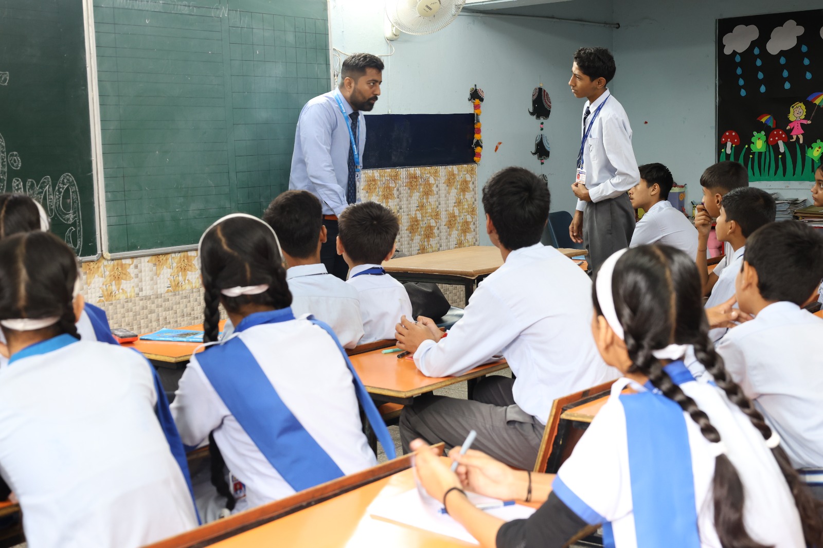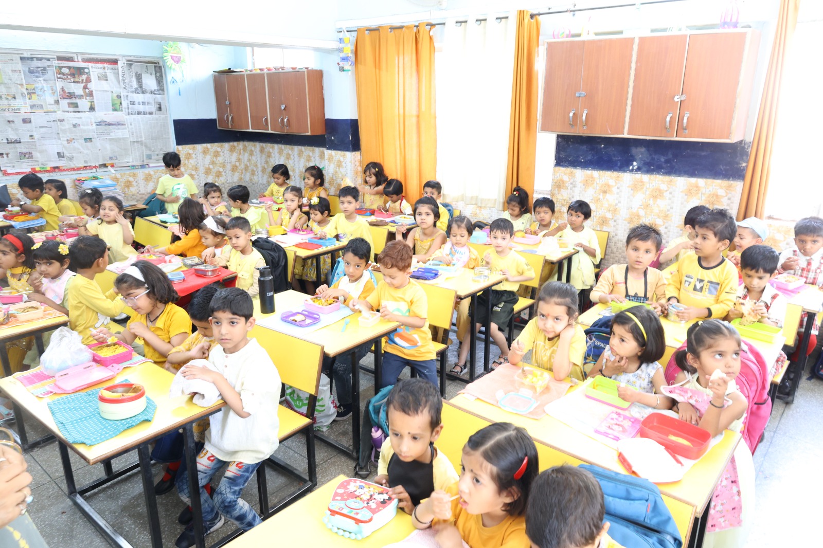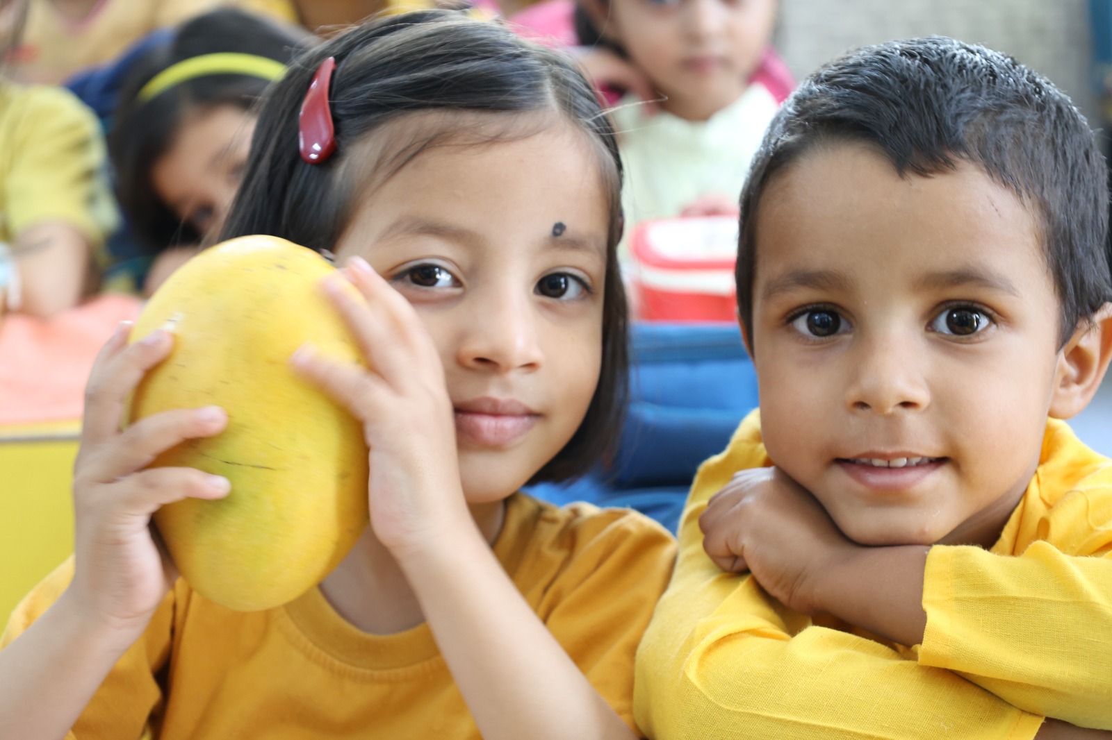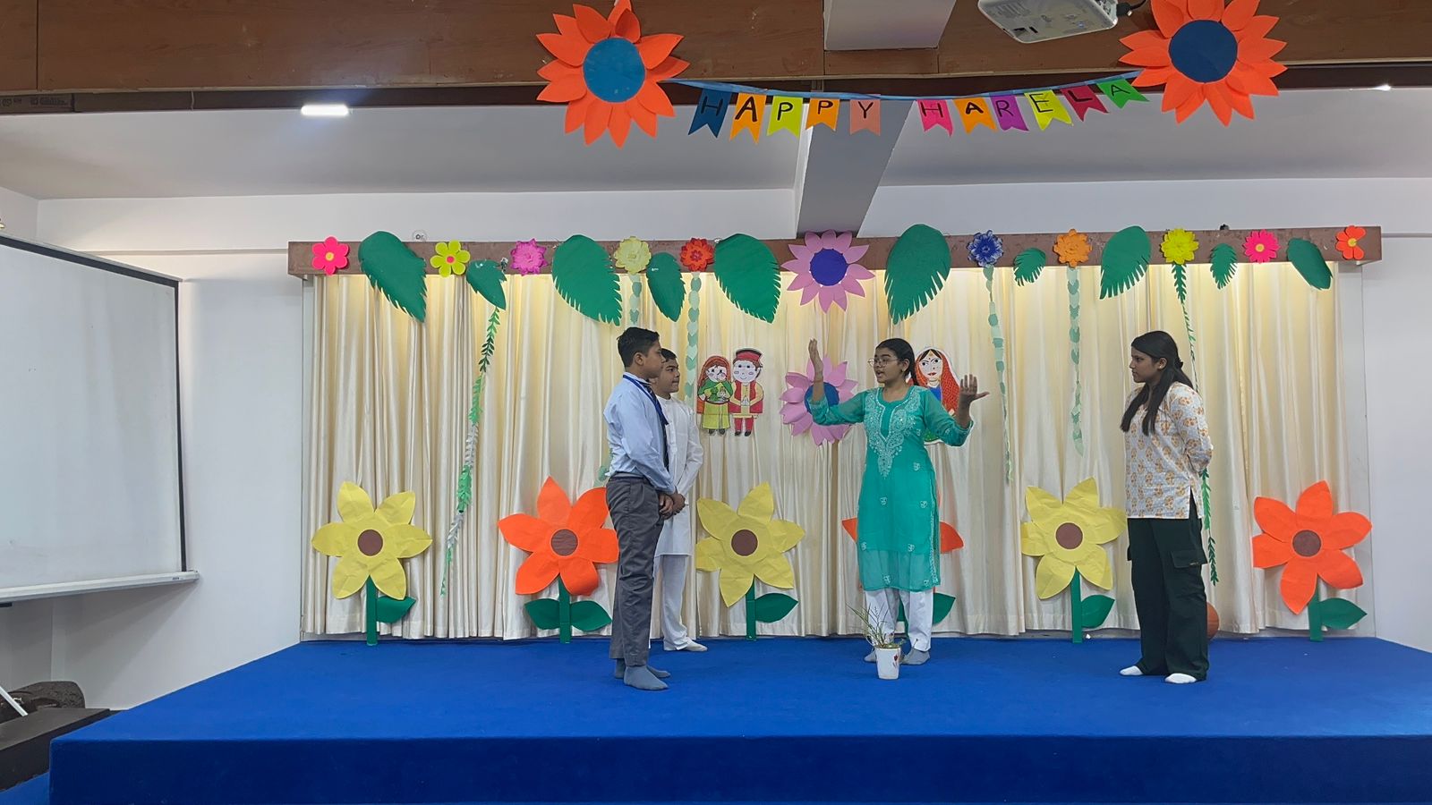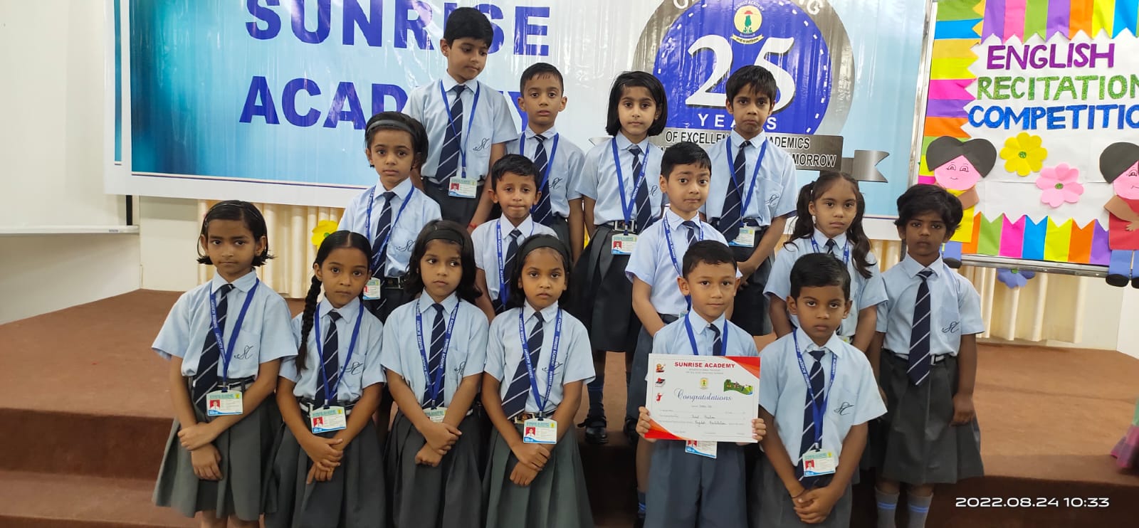Special Assembly by class 1 students … telling importance of seven colours of Rainbow.