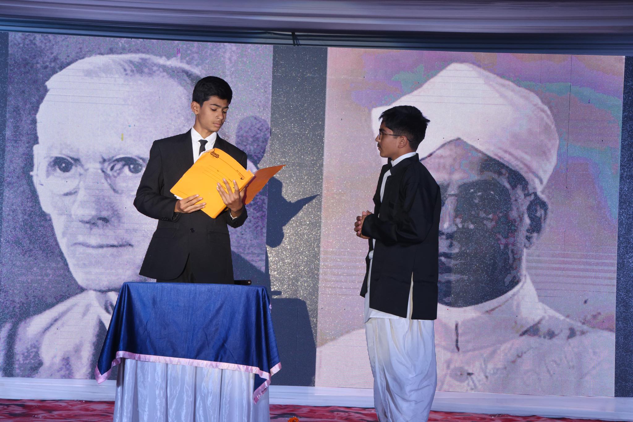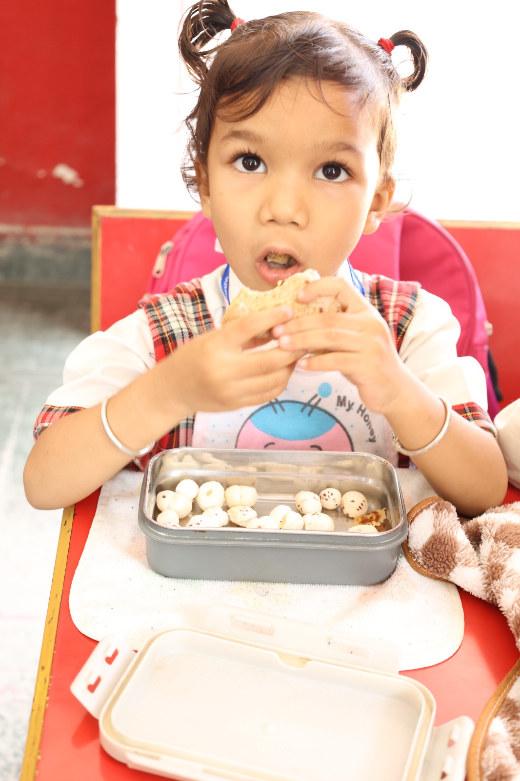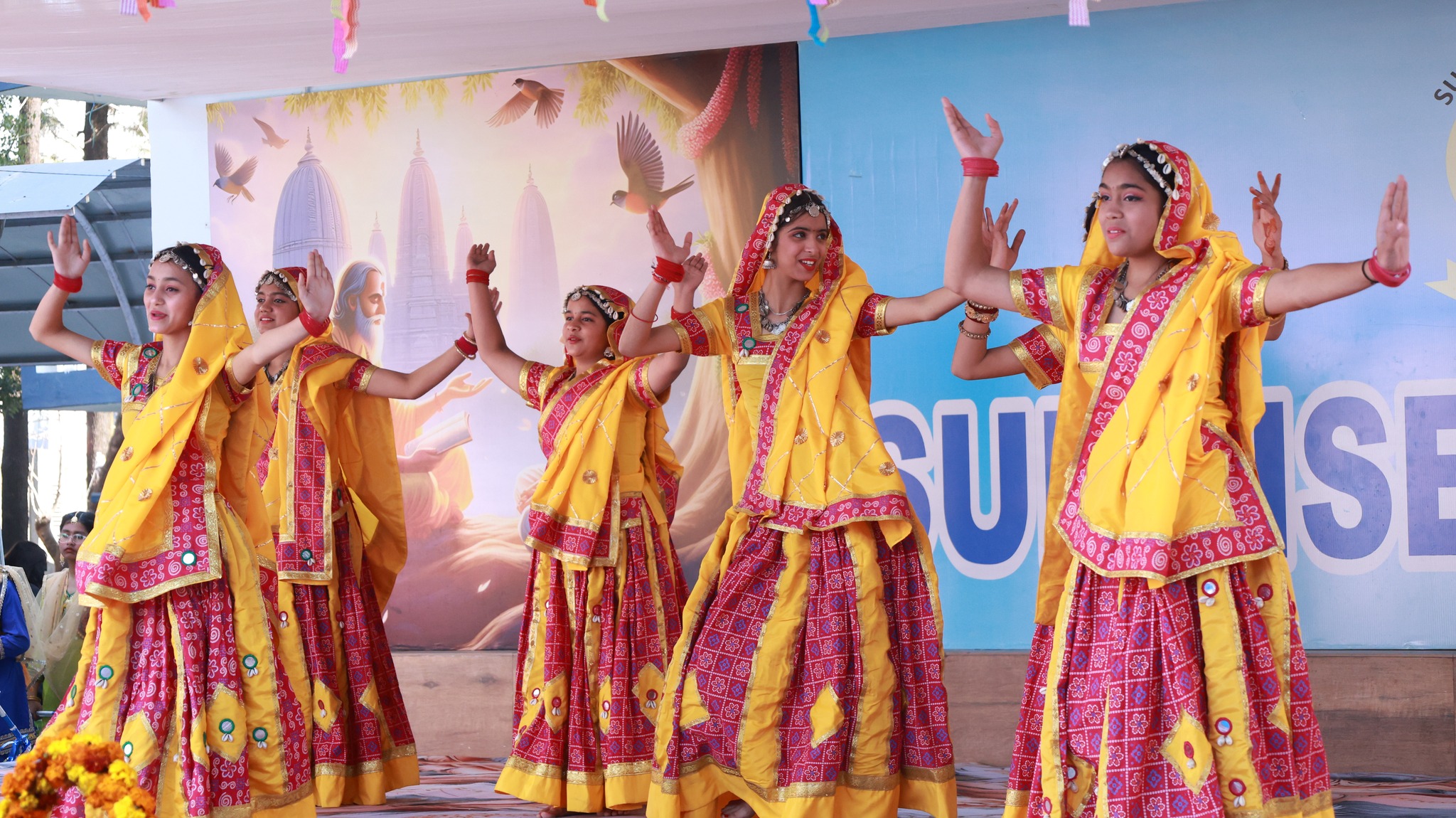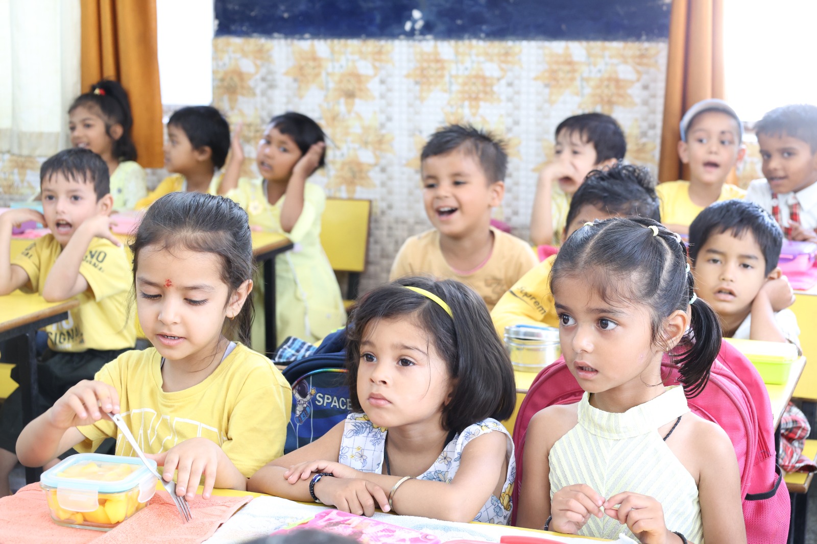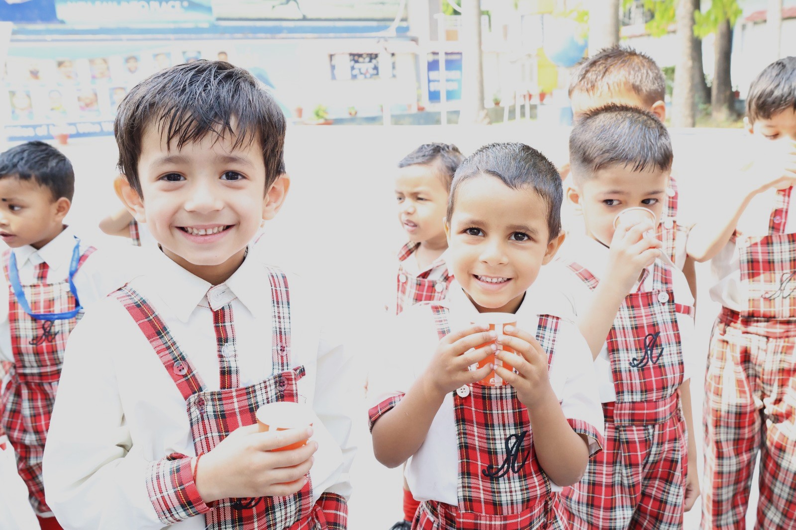 Special Assembly by class 1 students … telling importance of seven colours of Rainbow.