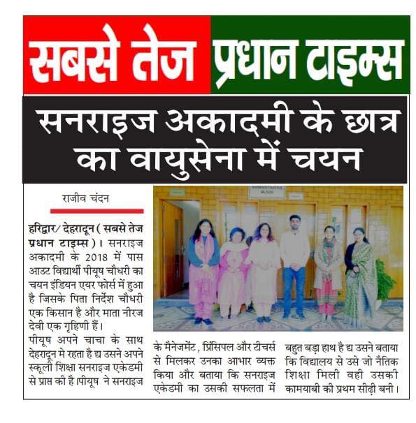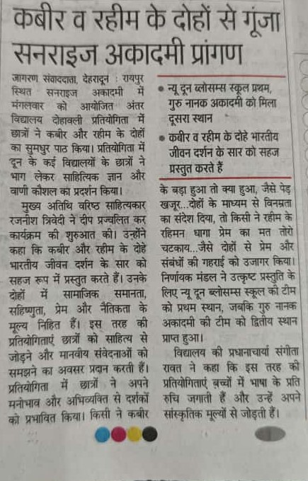 Sunrise Academy conducted an Awareness campaign …”Hawa ki dhun, saavdhaan Doon”… Organised by Dainik Jagran in collaboration with Cipla Ltd.